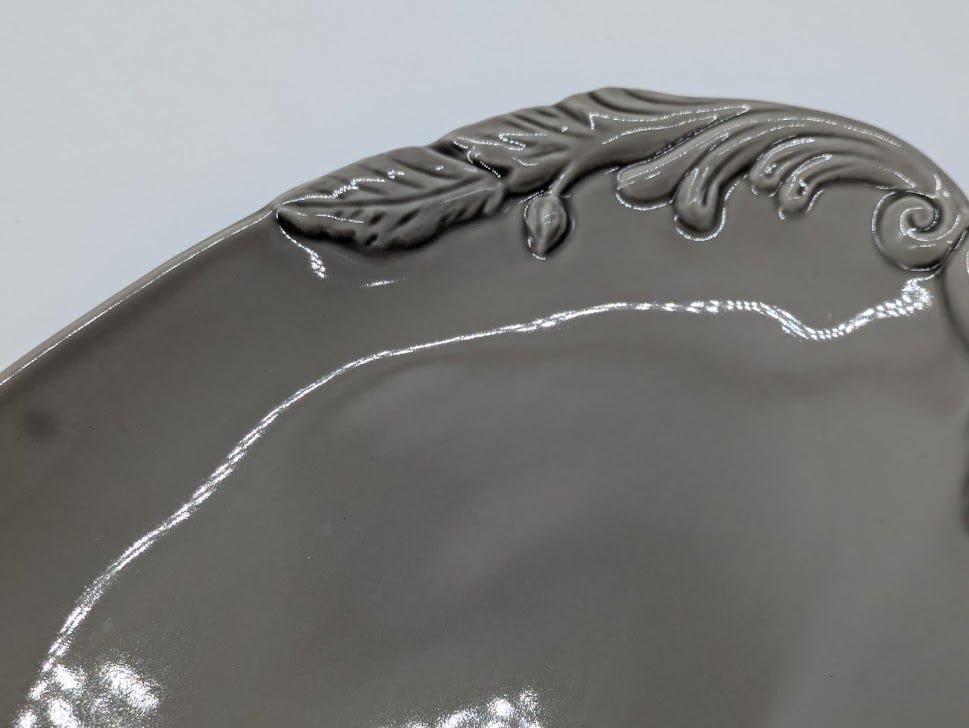 アンティークの様な雰囲気を醸し出す、フラットプレート。額縁の様なデザインとシックな色合いが、大人の食卓を演出。